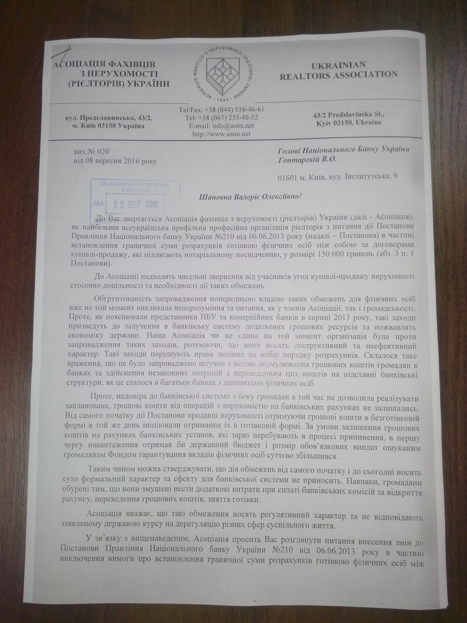 Систематизувавши чисельні звернення практикуючих фахівців у сфері нерухомості, керівництво АСНУ звернулось особисто до голови НБУ з приводу врегулювання питання розрахунків по угодах купівлі-продажу нерухомості. Адже, встановлене у 2013 році обмеження готівкових розрахунків неабияк ускладнює проведення операцій і створює безліч незручностей для всіх учасників.
