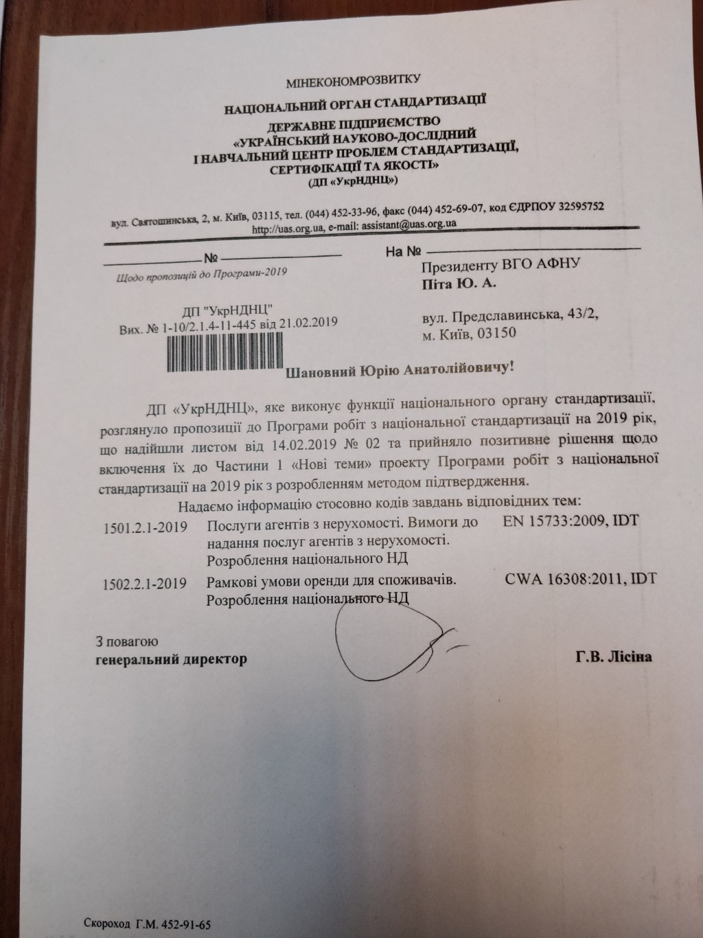 __________________________.jpgНормативные документы Украины, которая является ассоциированным членом Евросоюза, должны соответствовать законодательству ЕС. Следуя этому правилу, по инициативе Ассоциации специалистов по недвижимости (риэлторов) Украины Национальным органом стандартизации Государственным предприятием «Украинский научно-исследовательский и обучающий центр проблем стандартизации, сертификации и качества» были приняты национальные стандарты, гармонизированные с европейскими стандартами, методом подтверждения с вступлением в силу с 01 марта 2019 года. Были приняты стандарты ДСТУ EN 15733:2019 «Услуги агентов по недвижимости. Требования к предоставлению услуг агентов по недвижимости» (впервые), ДСТУ CWA 16308:2019 «Общие требования касательно условий аренды для потребителей» (впервые). Это был только первый  и очень важный шаг к построению цивилизованного рынка предоставления услуг в сфере недвижимости, защите прав и интересов, как наших потребителей, так и участников рынка. Также принятие таких стандартов является важным элементом на пути к созданию эффективной системы саморегулирования рынка предоставления агентских и брокерских услуг на рынке недвижимости. Ассоциацию ждет еще много работы и следующим шагом будет получение официального текста документа с последующим переводом на украинский язык. Далее по инициативе АСНУ будет создана рабочая группа с целью доработки принятых стандартов для последующего использования с учетом практики и особенностей осуществления риэлторской деятельности в Украине. Мы считаем, что объединяться необходимо на основе общих правил и стандартов, от этого выиграют все участники отношений.