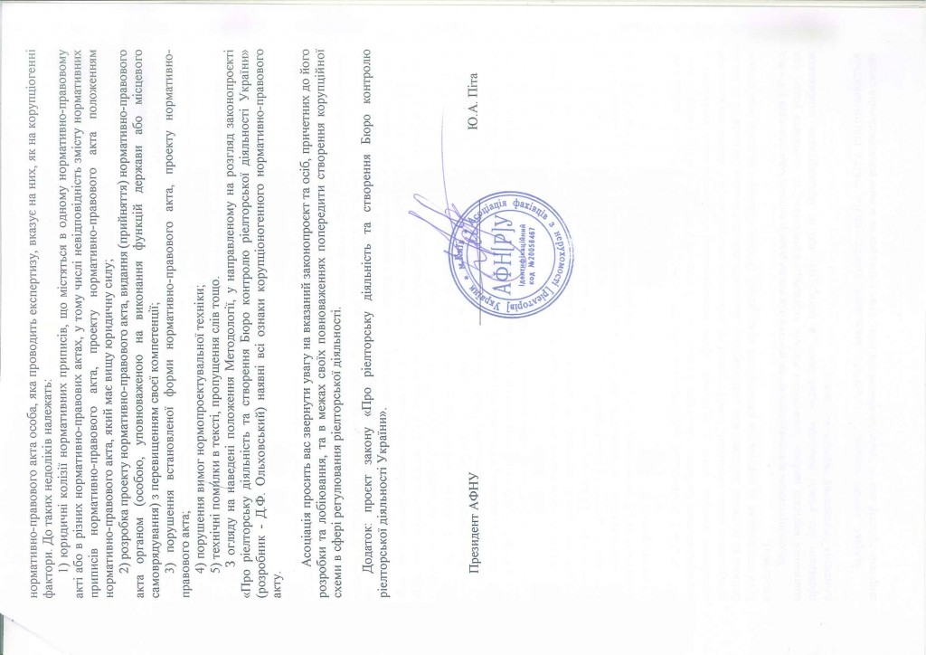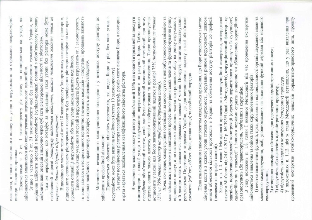 В процесі опрацювання та вивчення отриманого документа були виявленні ініціативи по суттєвому порушенні прав та інтересів громадян, інтересів учасників ринку нерухомості, а також намагання створення та узаконення явної корупційної схеми на рину надання рієлторських послуг.