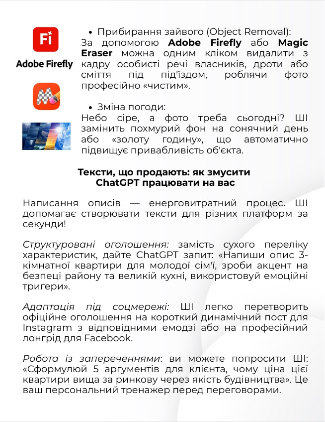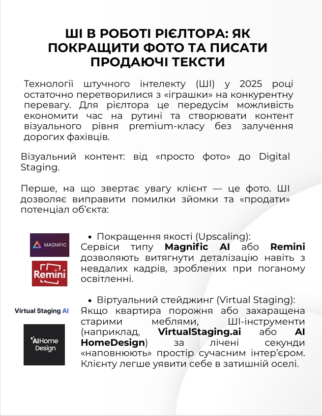 • практичні матеріали про ШІ в роботі рієлтора: фото, тексти, інструменти