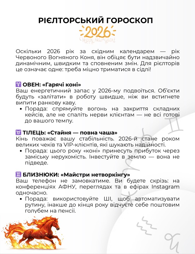 • рієлторський гороскоп на 2026 рік – як легкий, але символічний акцент новорічного випуску