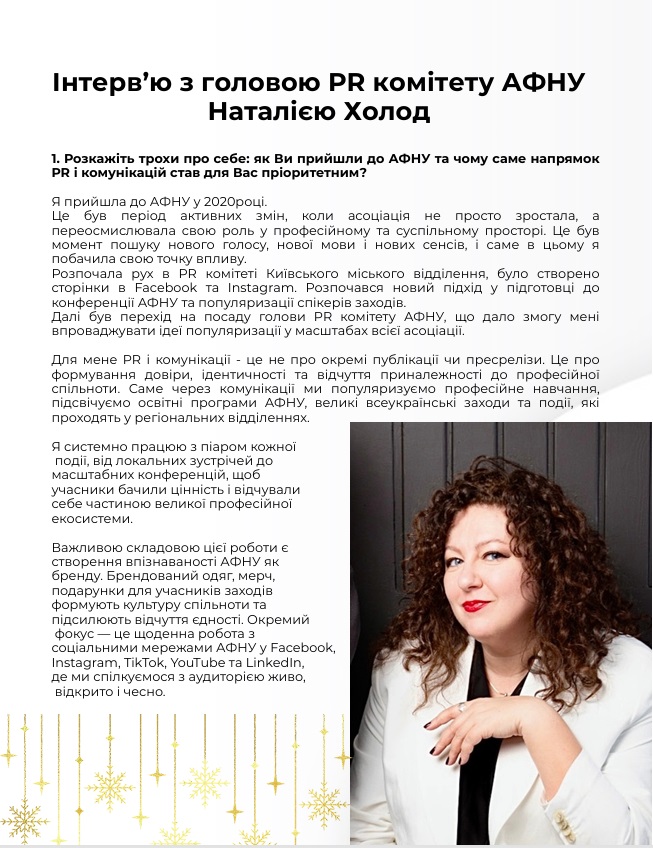 • інтервʼю з головою PR комітету АФНУ Наталією Холод