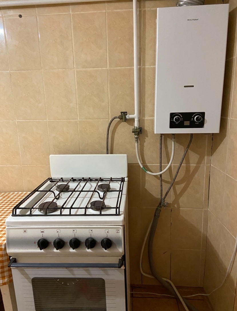 Підігрів води- газова колонка,є газова плита з духовкою