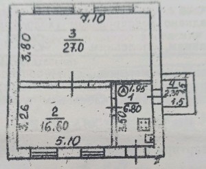 Житлова - 43, 6 кв м, кімнати : 27, 0 і 16, 6 кв м.