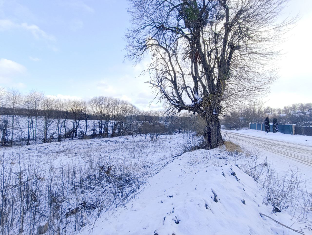 Ділянка фасадна, рівна, з мінімальним нахилом (з однієї сторони центральна дорога, з іншої струмок - при бажанні можна вирити собі ставочок).