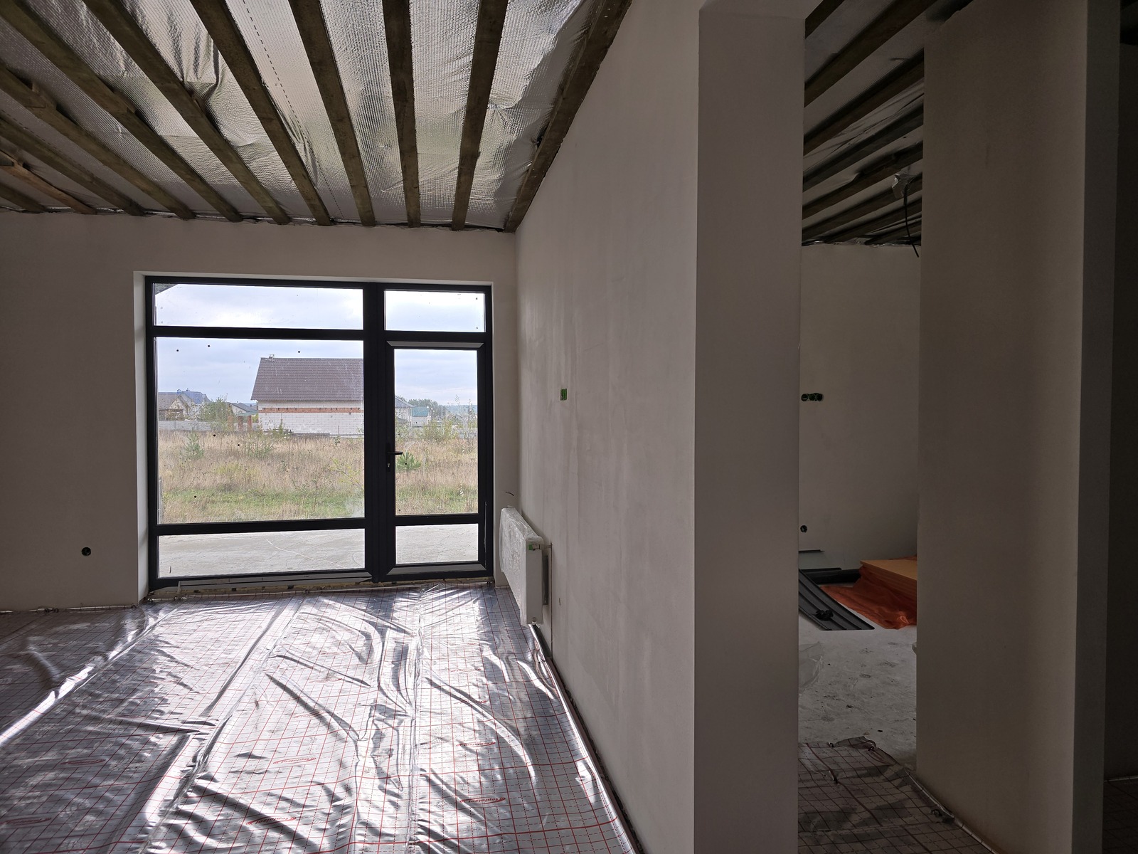 Продаж одноповерхового будинку незавершенного будівництва в с.Тетерівка. Ділянка 10 соток приватизованої землі. Загальна площа 120м.кв., 3 окремих кімнати,2 санвузла, кухня-вітальня 45м.кв., тераса, тепла підлога, світло 15кВт.,криниця, септик.