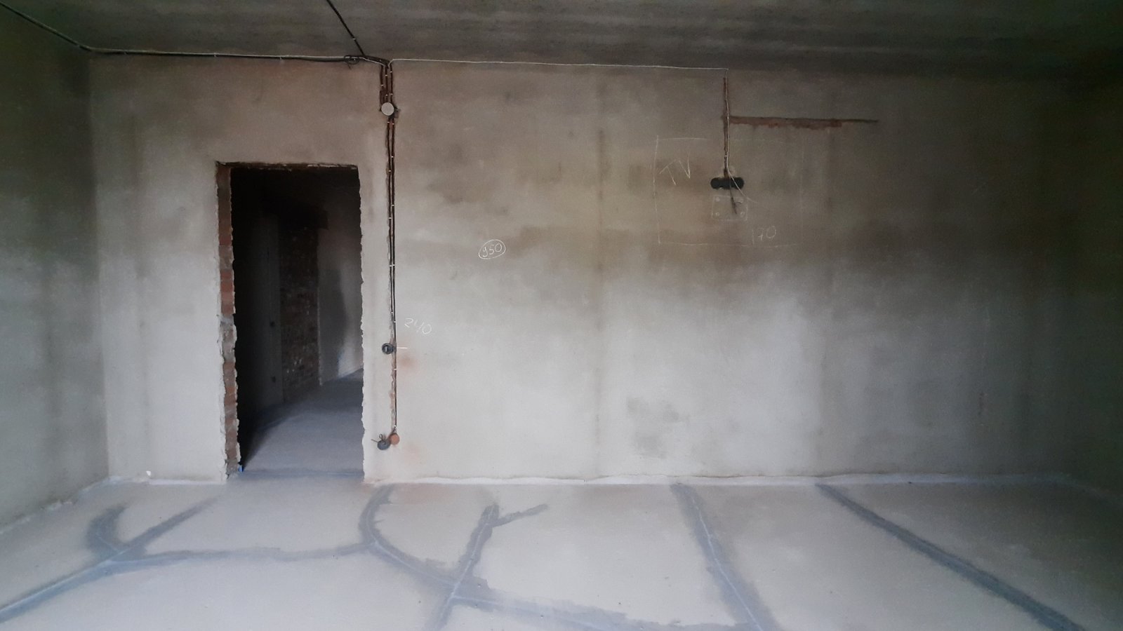 В середині стяжка, штукатурка, розводка електрики і сантехніки, двоконтурний котел, лічильники