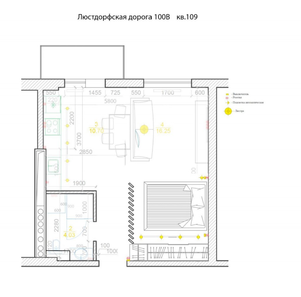 • сучасна кухня-студія з виділеною спальною зоною