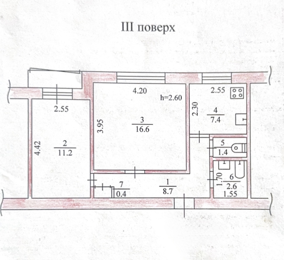 Площа кухні: 7 кв.м