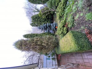 Шикарний ландшафтний дизайн: туї смарагд, туя брабанд золотиста, японськи сосни, кипарис нутканський, рододендрони, магнолія рожева, скумпія, бересклет крилатий, виноград, барбарис, тощо.