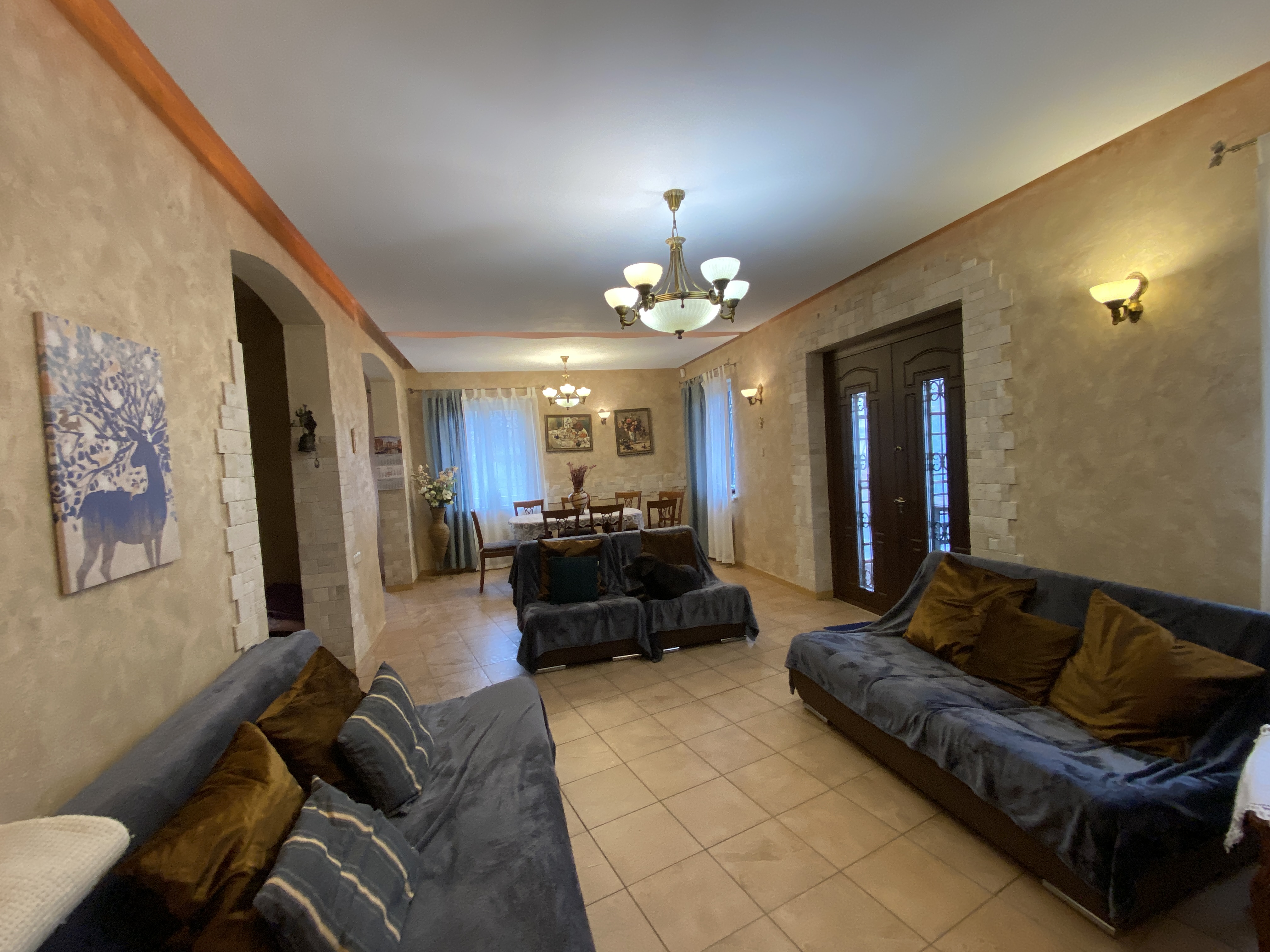 На підлозі кахель, ламінат. Стіни-венеціанська штукатурка, шпалери. Повна комплектація меблями і технікою.
