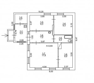 - будинок має 4 житлові кімнати: 17.8 + 9.3 + 9.3 + 8.9м.кв.