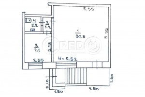 - Висота стелі 2.52м