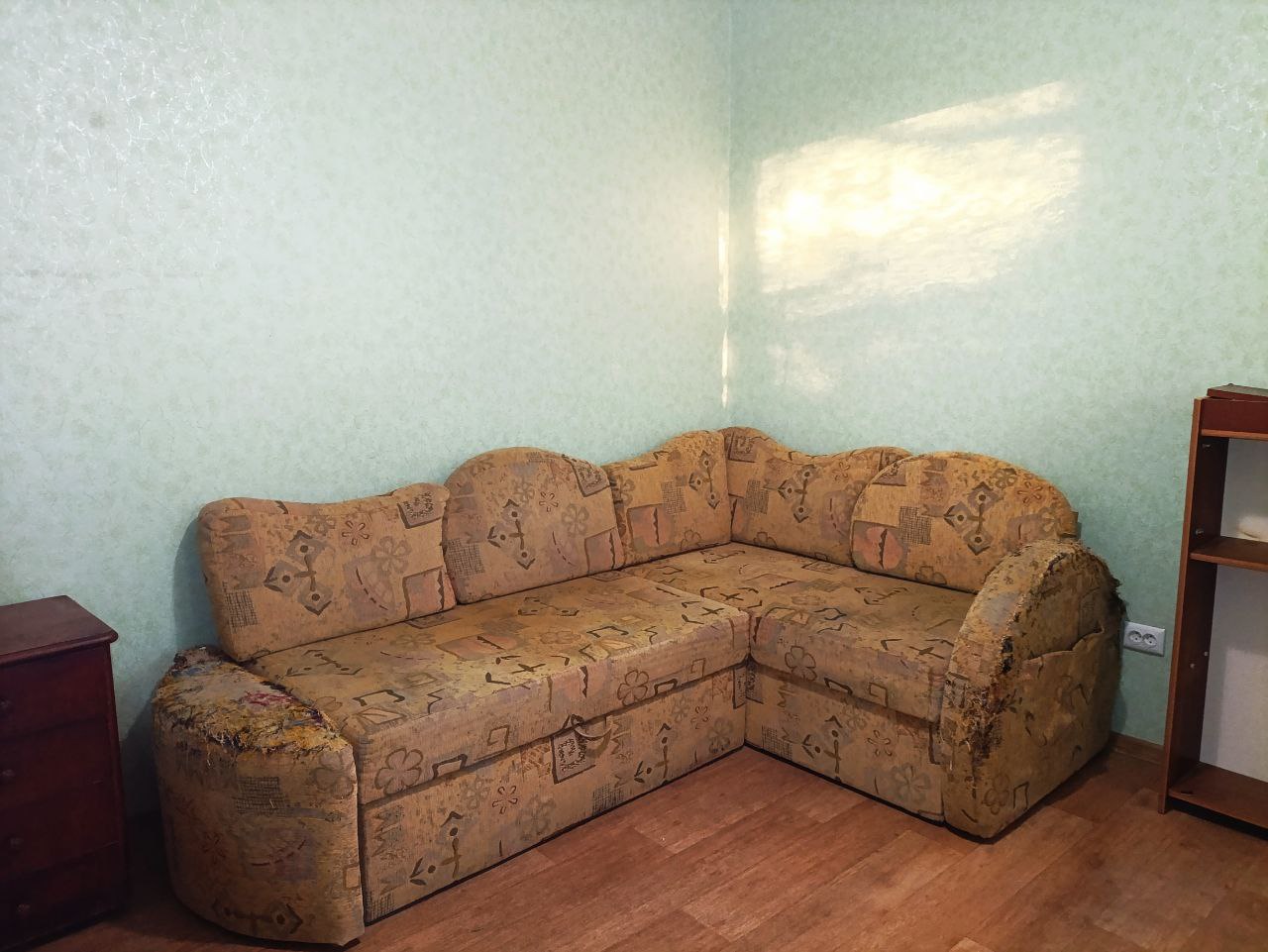 Мебель присутствует частично - стенка с плательным шкафом, диван, установлена новая кухня.