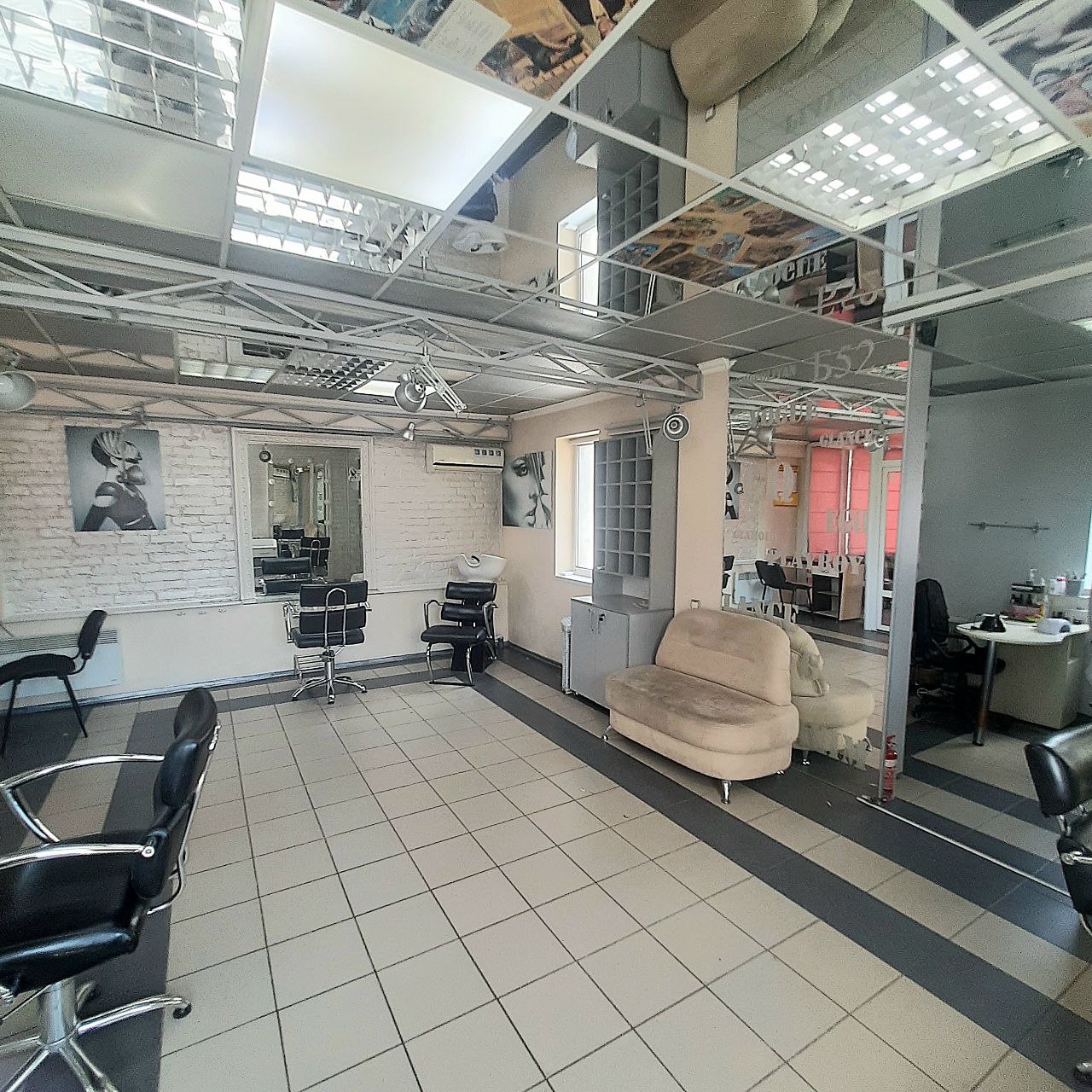 Здається з обладнанням. Три перукарських крісла, крісло для миття волосся, два робочих місця для манікюру, крісло для педікюру, вбудовані шафи, дивани. Опалення електричне, є кондиціонер. В приміщенні обладнана тепла підлога. Приміщення фасадне, великий трафік людей та транспорту. Підлога плитка, стеля підвісна, стіни пофарбовані.