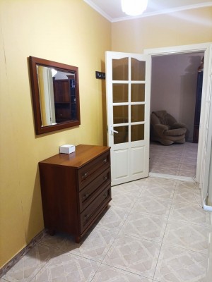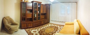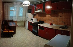 Полностью меблирована: диван, кровать, большой шкаф-купе, кухонный уголок, кухонный стол.