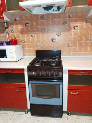 Бытовая техника: холодильник, стиральная машина, микроволновка, газовая плита с духовкой, вытяжка, электрочайник, утюг, бойлер.