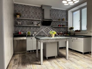 Дизайн виконаний у мінімалістичному стилі , має світлу кольорову гамму у стриманих тонах. Наповнення будинку якісними меблями та фірмовою, сучасною технікою, які залишаються новим власникам.