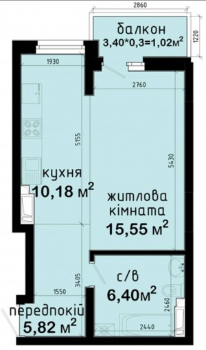 Кімната — 15,5 м²