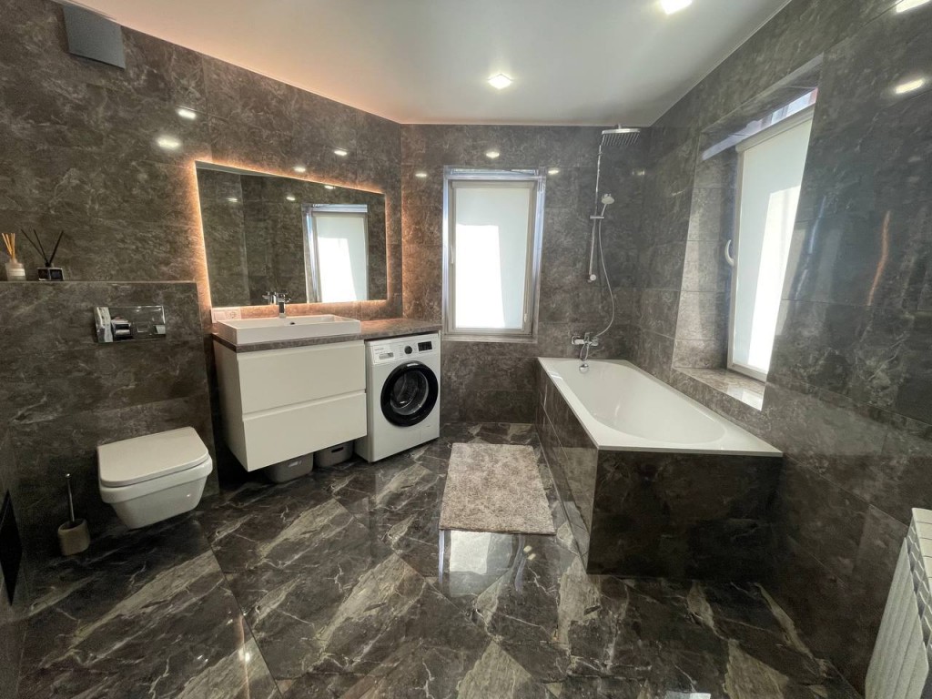 Просторі окремі кімнати, велика кухня, два санвузла, окрема гардеробна кімната - планування продумане до дрібниць.