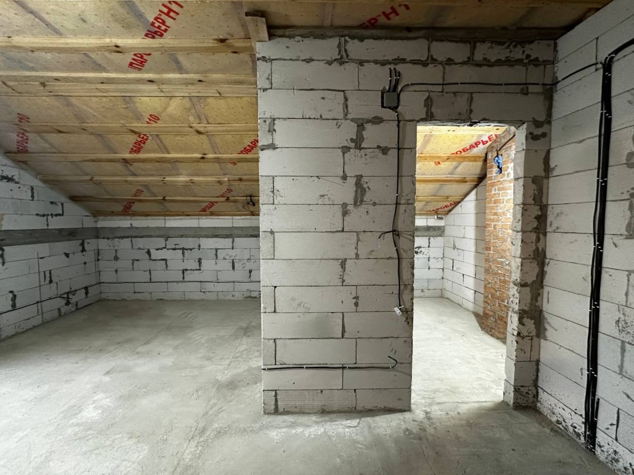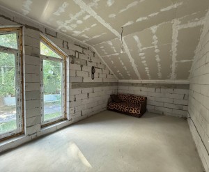 ID:744 Продаж будинку в центрі с.Ворзель, загальною площею - 210м2, з яких 98,5м2 - житлова площа. Гарна локація! Поруч маршрутне таксі, магазини, електричка. Тихе і спокійне місце для проживання. Будинок розташований на ділянці 7,5 соток, з фасадом 17,5 метрів. Побудований з газоблоку (400мм), утеплений мінеральною ватою, з вулиці шпакльований. Світло заведене (20кВт). Каналізація - септик з переливом, кожна яма по 6 кубів. Вода - централізована. По вулиці газ. Монолітний фундамент 2,2м глибиною. Має цокольний поверх з сауною та кімнатою відпочинку (можна використовувати як бомбосховище). На першому поверсі кухня-студія, житлова кімната та санвузол, на другому поверсі три житлові кімнати (одна з гардеробною) і санвузол на поверсі. Висота стель 2,8м. Перекриття - монолітні плити. На ділянці молоді плодові дерева.