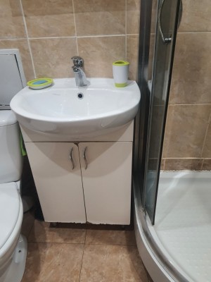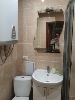 Санвузол у квартири суміжний ванна та унітаз, обшитий кахлями, теплий, в санузлі є батарея опалення , квартира світла, з гарним косметичним ремонтом , всі вікна в квартирі та лоджа мпо