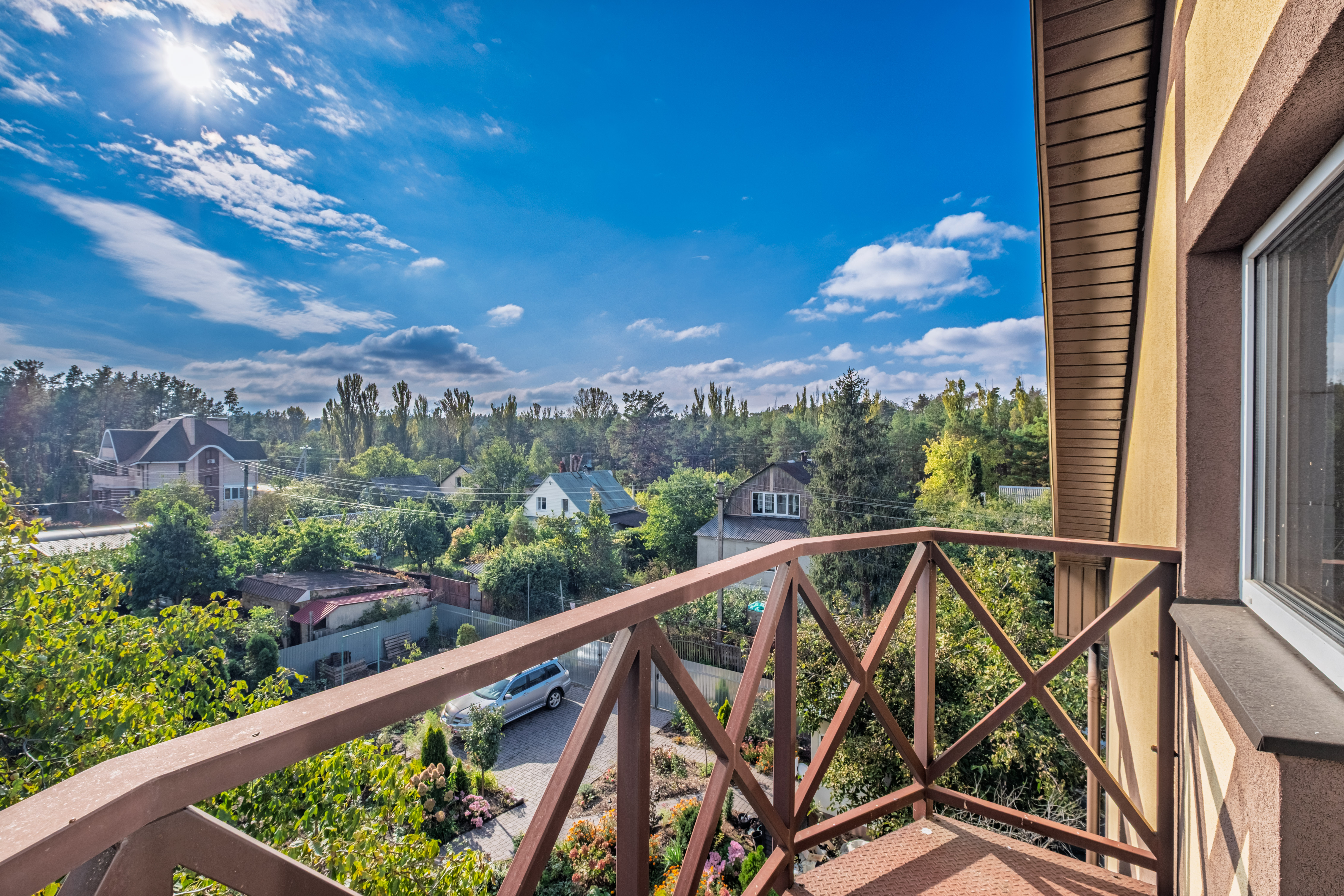 Балкон з неймовірним видом на природу – ідеальне місце для ранкової кави.