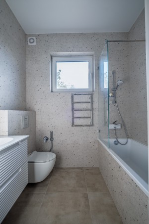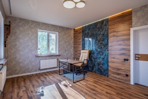 2-й поверх: (3 дитячі, спальня, кабінет,гардеробна), 2 великі суміщені санвузли (в одному ванна, в інших – душові кабіни) = 116,3 м2