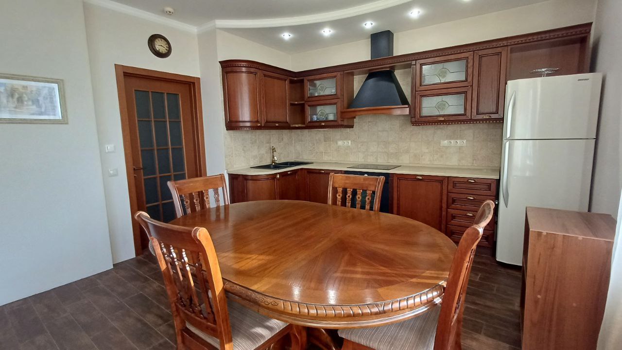 Тепла підлога на кухні, повністю вбудована техніка: посудомийна машина, індукційна плита, духовка, холодильник, кондиціонери та бойлер — для вашої зручності.