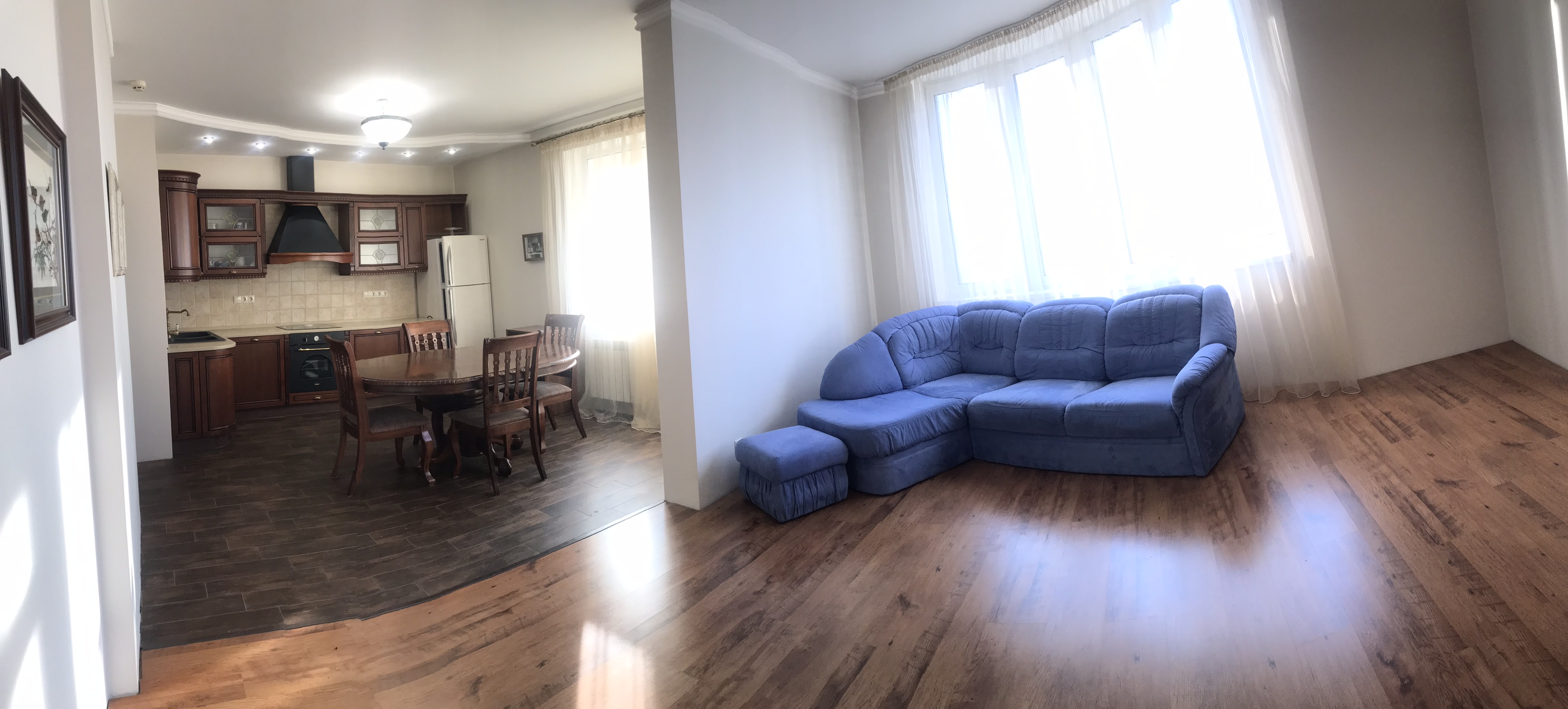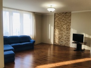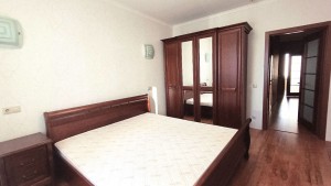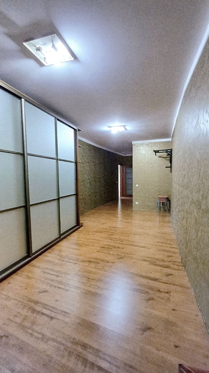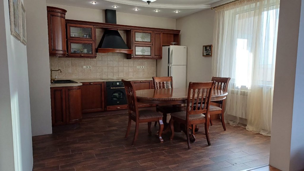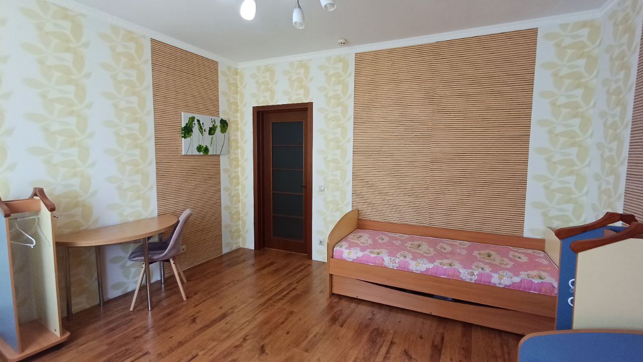 Загальна площа квартири 114,5 м² на 9-му поверсі/18-ті поверхового цегляного будинку 2008 року будівництва. Планування з двома окремими спальням 17 кв.м та 14,1 кв.м; великою вітальнею з кухнею-студією 38 кв.м; двома санвузлами та заскленим балконом, вихід на який із кухні. Ремонт у відмінному стані. Квартира продається з вбудованими шафами-купе та іншими якисними меблями з натуральних матеріалів.