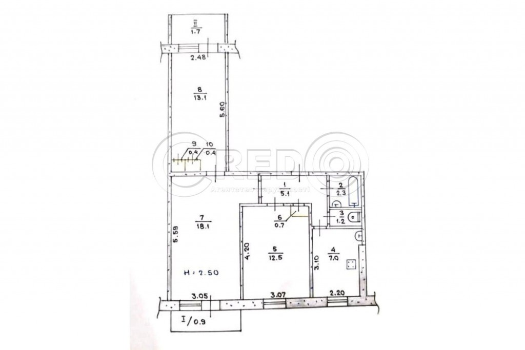 - без маленьких кімнат : 18,1 + 13,1 + 12,5 м.кв.