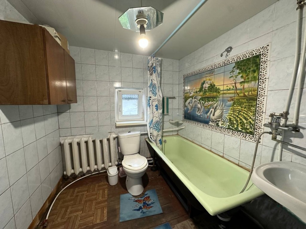 ID:768 Продаж будинку по вул.Покровська, в м.Малин, Коростенського р-ну. Будинок 80 року побудови, в хорошому житловому стані, дерево обкладене цеглою, розташований на 6,8 сотках землі. Будинок - 71м2, має прекрасне планування: 3 роздільних кімнати (житлова площа - 39,6м2) та одна прохідна, кухня (є холодильник, мікрохвильовка, газова плита, газовий котел та колонка на гарячу воду). С/в в будинку (ванна) + великим плюсом є підвал для зберігання консервації. Криша застелена шифером (частково міняли в 2023 році). Вікна - металопластикові. Перегляд за попередньою домовленістю. Сертифікат - ТАК!