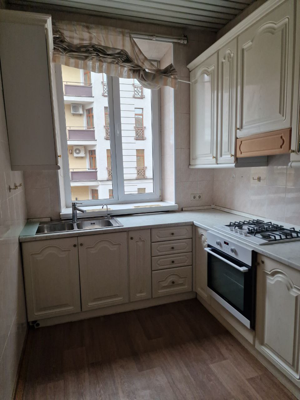 Сталінка. Загальна площа - 106 кв. м. Площа кухні - 7.70, цегла. комфорт кімнат - 4, роздільні 6-ий поверх, 7-ми поверхового будинку, двостороння. Санвузол: суміжний, опалення централізоване, житловий стан. Меблювання - немає, побутова техніка - плита.