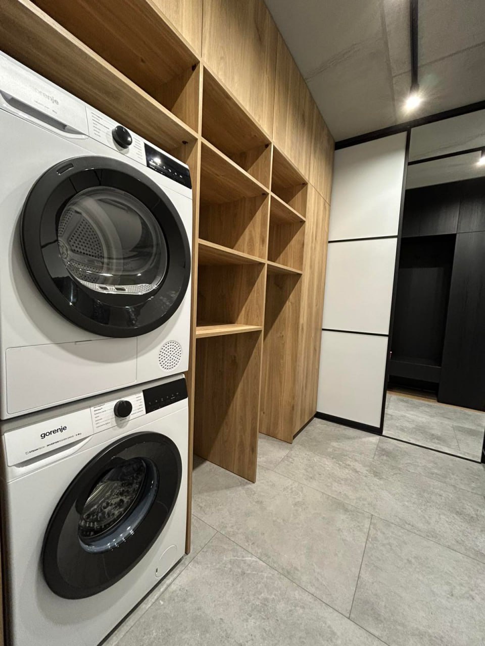 Окрема кімната-гардеробна, обладнана пральною машиною та сушкою