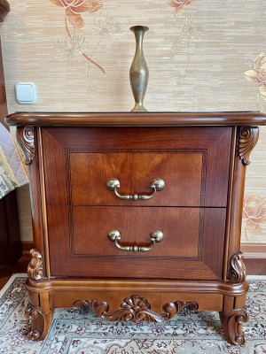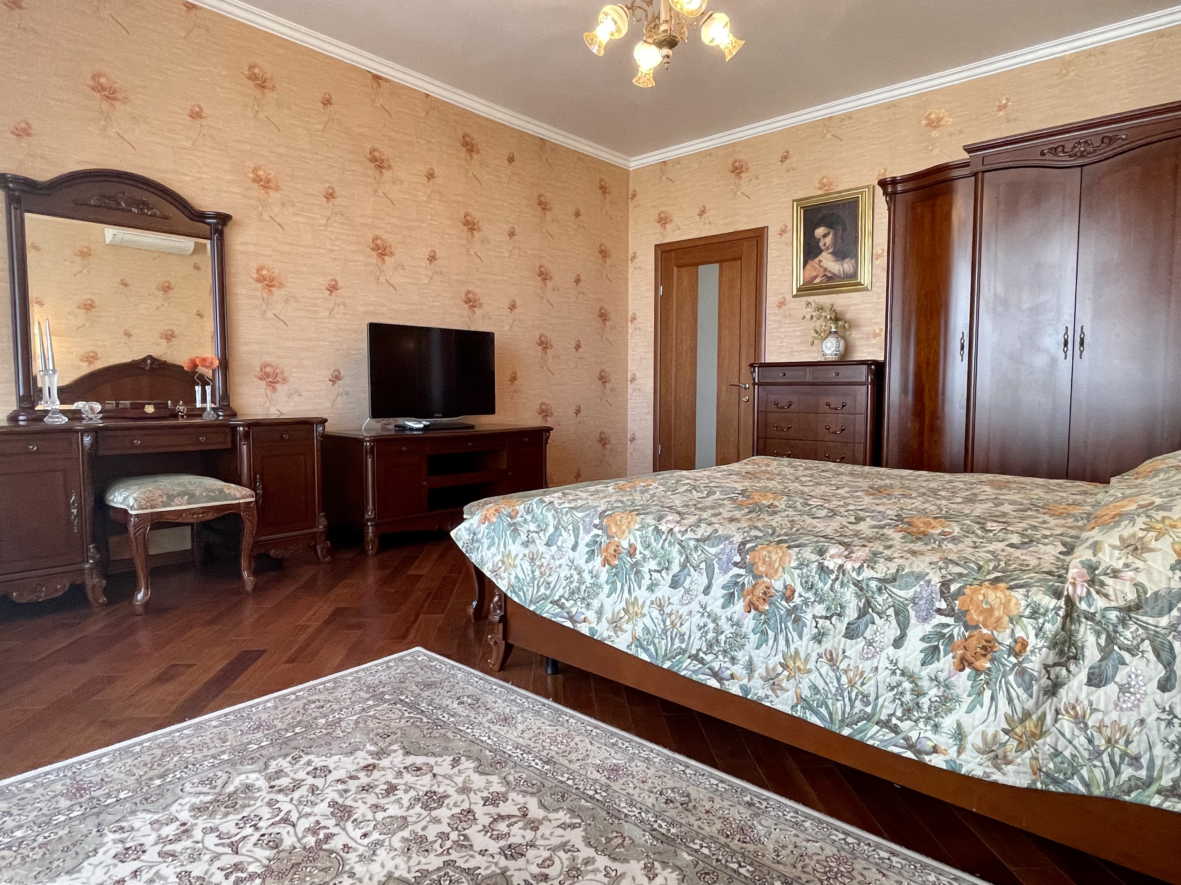 Планування: кухня, простора вітальня та дві окремі спальні. Виконаний ремонт у класичному стилі. Квартира повністю укомплектована меблями та побутовою технікою. У кімнатах — два двоспальні ліжка та диван.