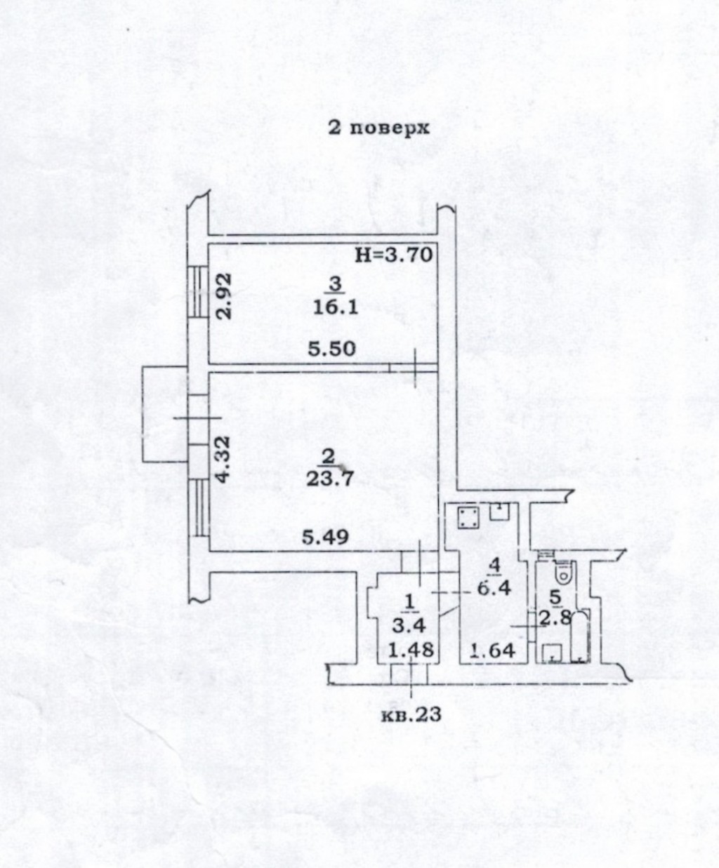 2 кімн., площа 49/33/7, поверх 5/5