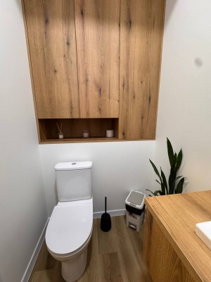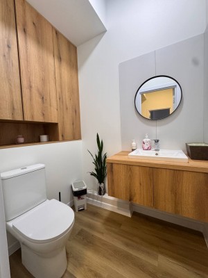 Санвузол та коридор на 2 кабінети. Зроблений сучасний дизайн, встановлено бойлер, багато освітлення.