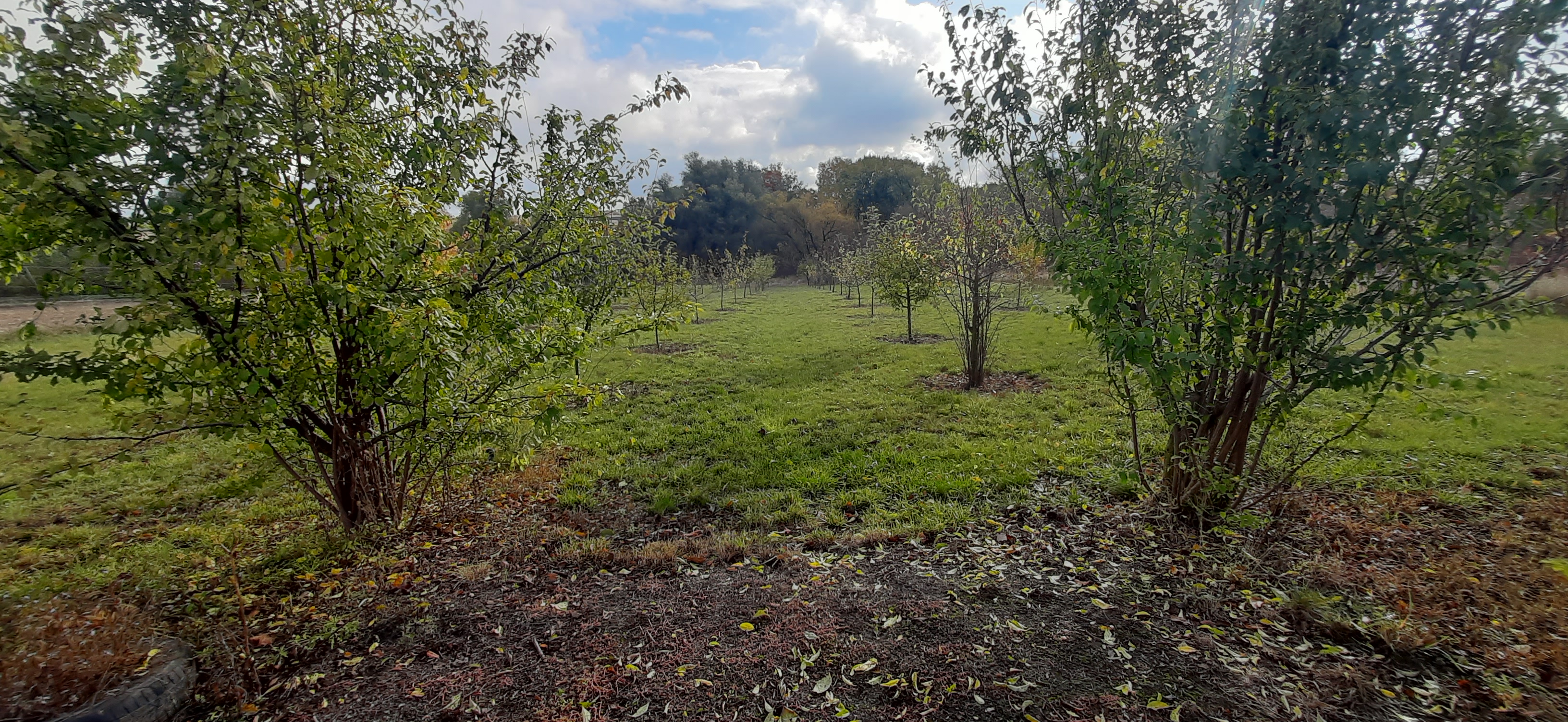 великий, молодий фруктовий сад, весь плодоносить