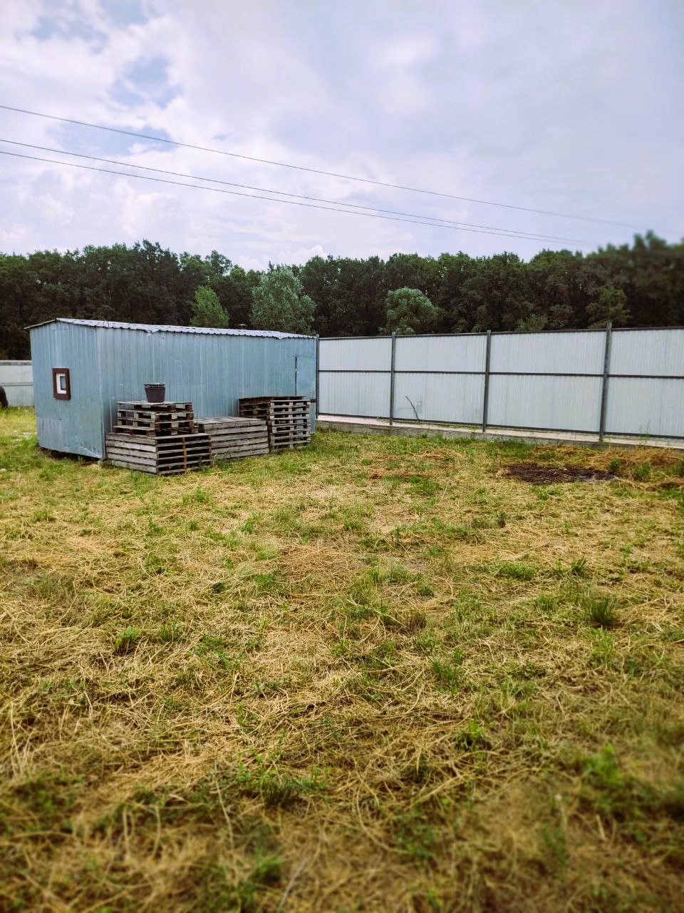 По периметру огорожена забором із профнастілу висотой 3м.Ворота відкриваються на 5 м для заїзду транспорту.