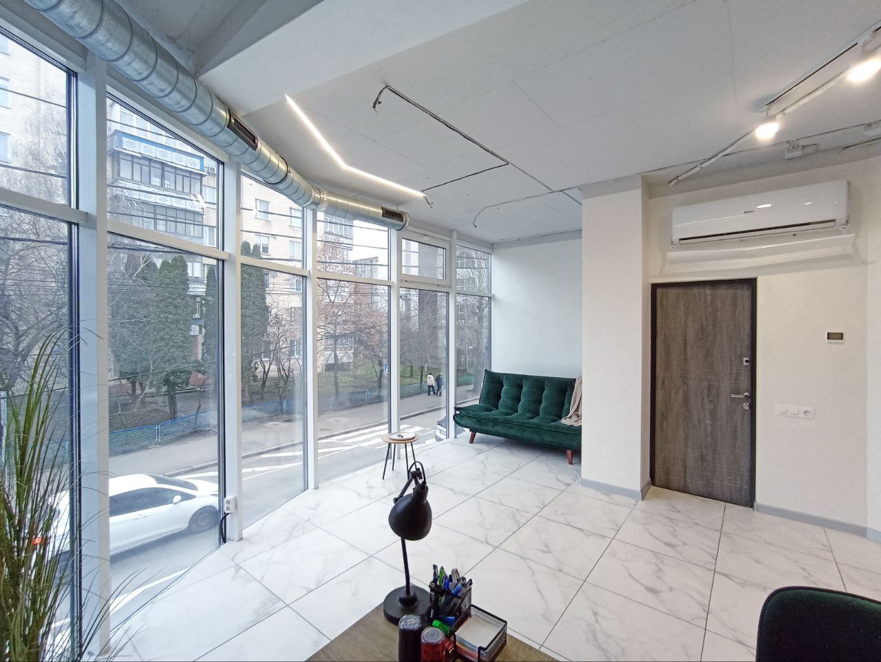 Бізнес центр новий та сучасний, повністю працюючий. Цілодобовий доступ. Світло 24/7. Панорамне фасадне вікно на всю ширину.