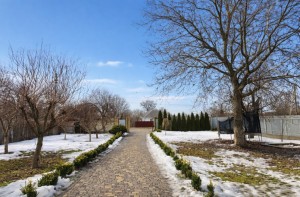 Двір вимощений бруківкою, широкий заїзд з парковкою на 4 авто, висаджені туї, дерева, квіти.