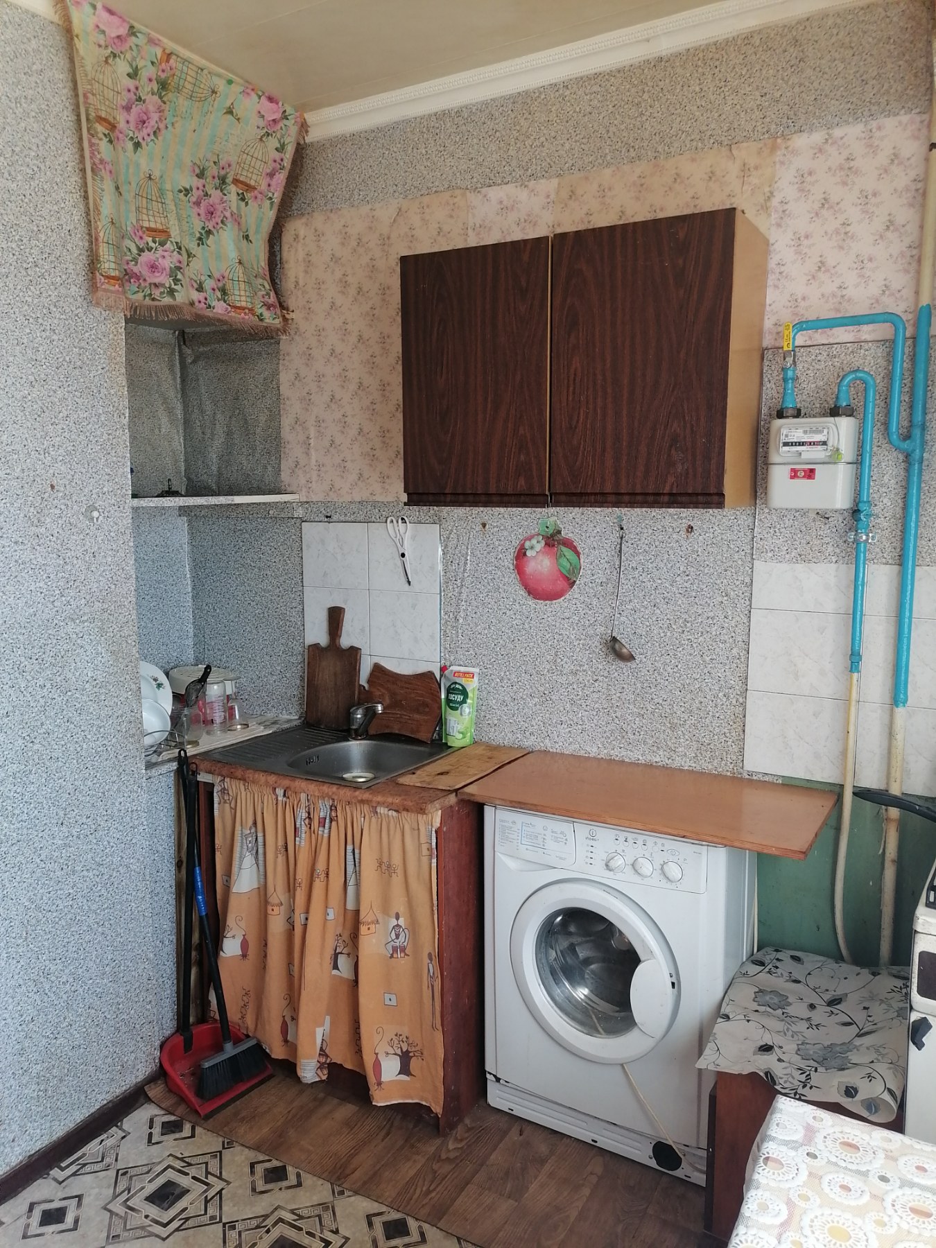 Загальна площа-34.5кв.м, житлова-17.3кв.м, Н-2.50м, кухня-7. 8кв.м, туалет та ванна суміжні- 3.6кв.м, коридор-4. 8кв.м, балкон-0.9кв.м. Квартира одностороння, не кутова, вікна дивляться на швидкісний, сонячний бік. Вікна та балкон-мп, труби мп, лічильники: на газ, воду, тепло на будинок. Стан житловий. Сусіди адекватні. Поруч: АТБ, школа, міська лікарня №2 (тисячка), швидкісний, зупинки маршруток.