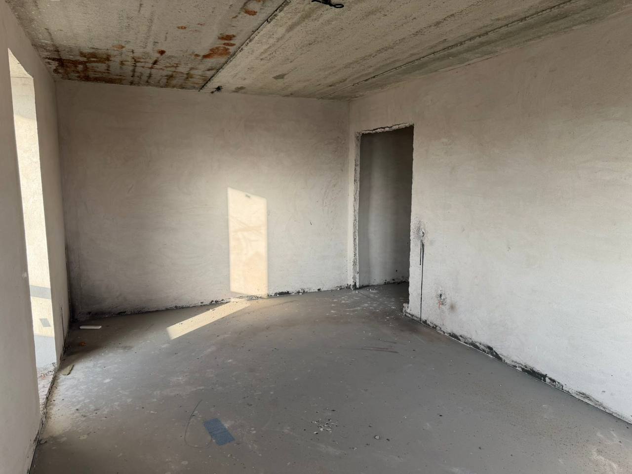 Комунікації підключені. Готова стяжка та чорнова штукатурка.