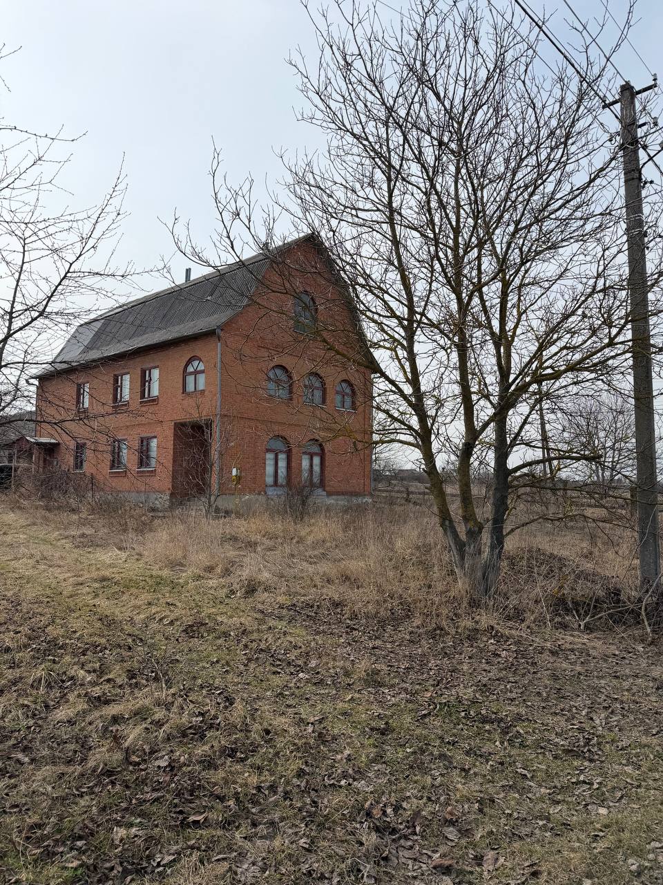 С.Копистин, вул. Лугова 1, будинок , 2 поверхи + мансарда , площа 339,4кв.м, житлова 179. Ділянка 25 соток, кутова. Будинок побудований з цегли, панельне паереуриття, зроблені чорнові роботи, заведено світло, газ, септик, криниця з насосом. Котел одноконтурний, колонка. На ділянці є гараж на 2 авто, погріб-підвал, складські приміщення, майстерня, приміщення для світських тварин.