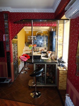 1-й уровень:прихожая,санузел,кухня гостиная с увеличенным балконом и барной стойкой;