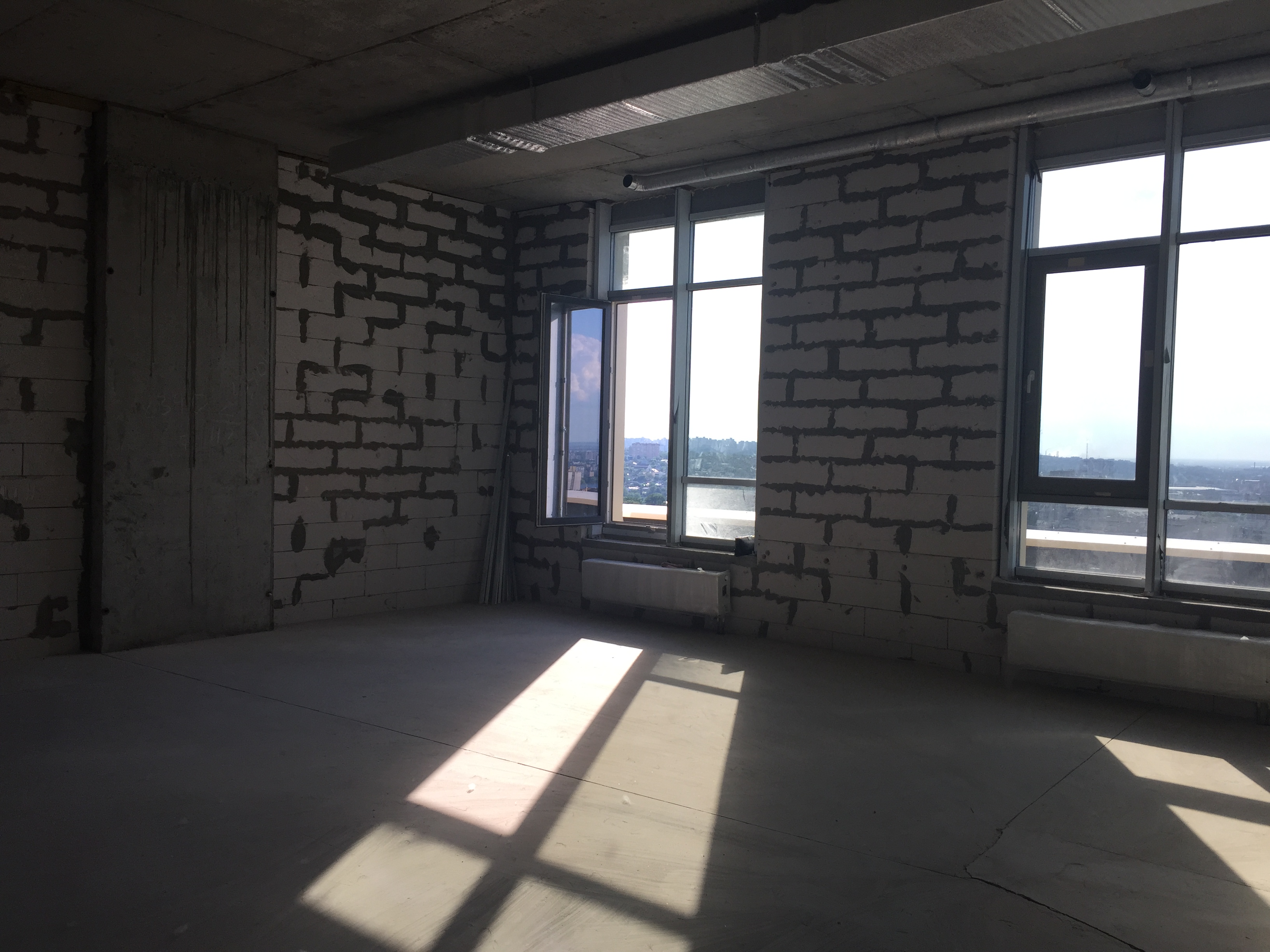 Квартира после строителей под отделку, 24 и 25 этаж из 25, площадь: 94 кв.м., высота потолков: 3,5 м, свободная планировка, 2 очередь(введен в эксплуатацию в 2015 году), собственная терасса + экплуатируемая кровля, система приточно - вытяжной вентиляции.