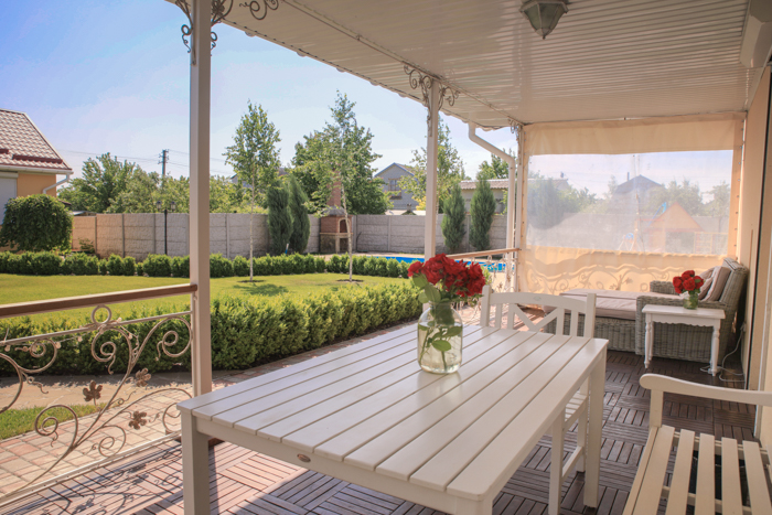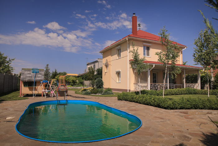 Домовладение, в живописном месте, в пригороде Днепра. Построен в 2014 году, материал - ж/б панели (финская технология), наружное утепление 100 мм. Интерьер основного дома, выполнен в стиле «Прованс». Мебель от ведущих мировых брендов, производства Франции и Италии. Техника Miele и Gorenje. В доме просторная кухня - гостиная, 3 спальни, два санузла, гардеробная и технические помещения. Из кухни - гостиной выход на просторную террасу, с красивым видом на участок. На участке имеется действующий бассейн, гостевой дом, парилка на дровах (отделка – «липовый горбыль»), ухоженный сад. Гостевой дом полностью укомплектован бытовой техникой, кухней, спутниковым телевидением, мебелью. По всему участку установлено видео - наблюдение, а также охранная сигнализация. Автономное электрическое отопление (напряжение 380 В, три фазы).