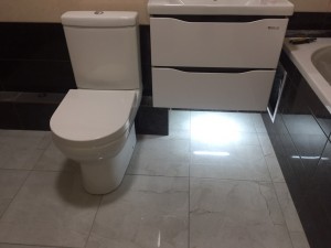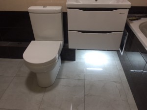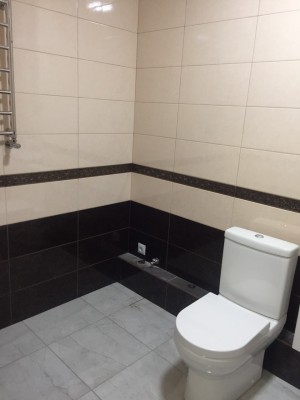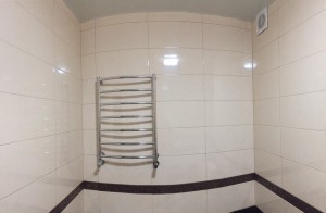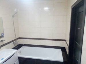 — современная плитка на кухне и в санузле,