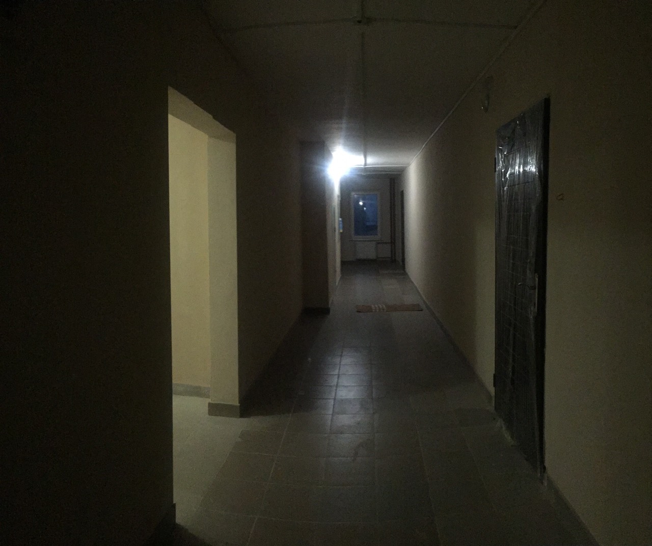 — в коридоре на полу так-же плитка,
