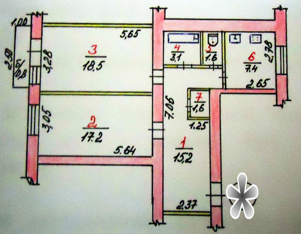 2 кімн., площа 65/-/7, поверх 2/5